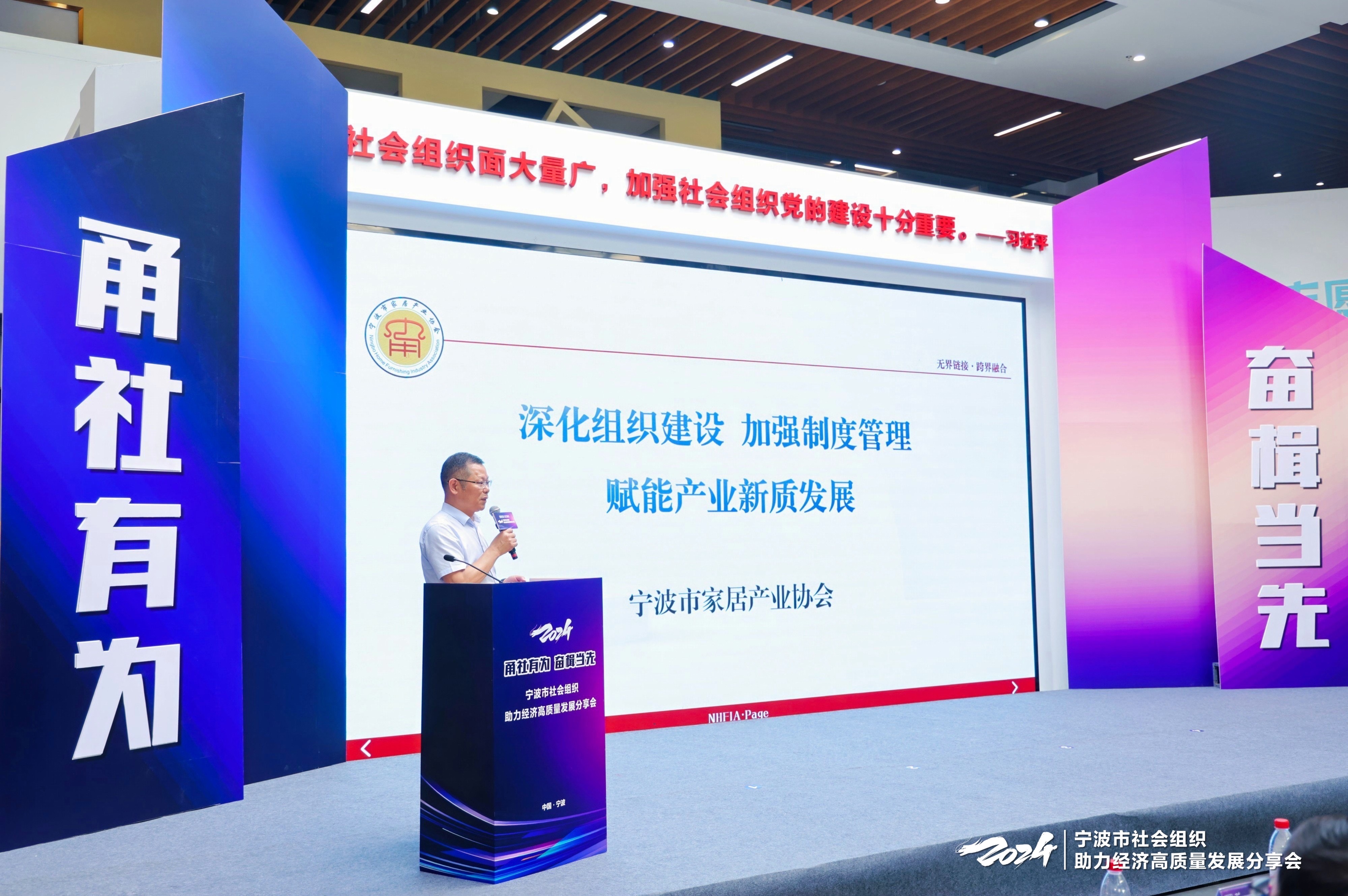 伟德电子平台作为优秀社会组织代表分享了助力经济高质量发展的经验和创新做法。协会执行会长兼秘书长杨君渊作为主讲人,以“深化组织建设,加强制度管理,赋能产业新质发展”为主题,以协会“无界链接,跨界融合”的使命,以协会“全力打造三高目标——高质量的家居环境,高品质的人居环境,高品位的生活方式”的愿景为脉络,分别从民主办会、制度化管理、协会助力产业经济高质量发展的实践做法等三个维度做了高质量的经验分享,获得了与会的领导与同仁的热烈掌声。