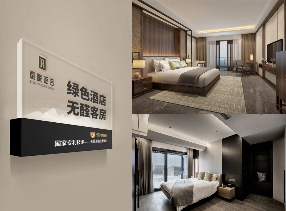 打造了国内首家无醛装饰装修的五星级酒店,例如广州融通珠江宾馆改建工程采用其生产的“无醛材料”,成为酒店装修无醛新风口.