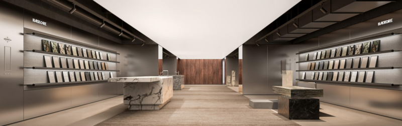 宁波哈歌利新材料有限公司深耕石材、岩板、瓷砖的应用美学研究,全新打造的 3000 平方米展厅坐落于宁波 CBD 南部商务区海运大厦一楼。