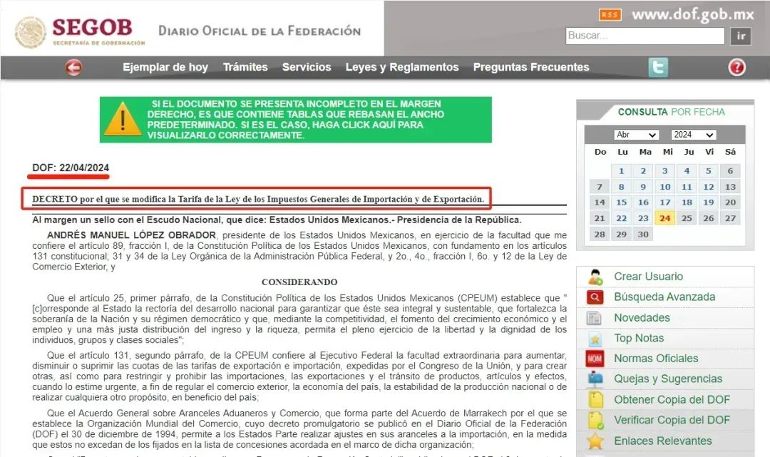 日前,墨西哥总统洛佩斯签署法令,针对钢、铝、纺织品、服装、鞋类、木材、塑料及其制品、化学产品、纸张和纸板、陶瓷制品、玻璃及其制成品、电气设备、运输设备、乐器、家具等544项商品征收5%至50%的临时进口关税。
