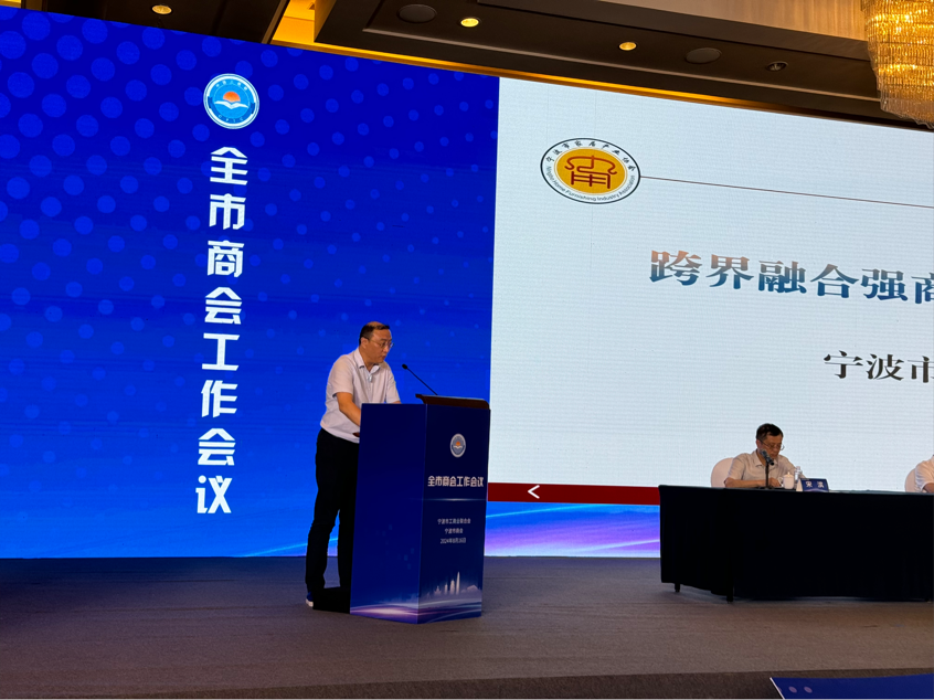 2024 年 8 月 16 日下午,伟德电子平台会长余霆、执行会长兼秘书长杨君渊、副秘书长梅发爱参加全市商会工作会议。