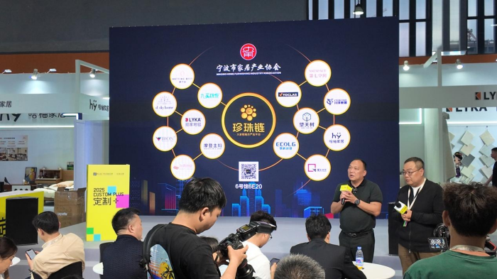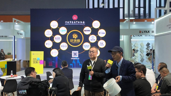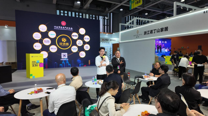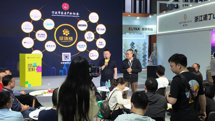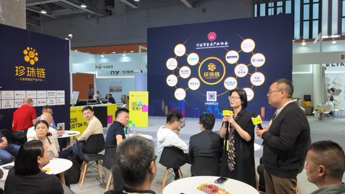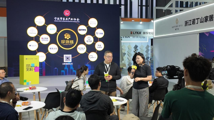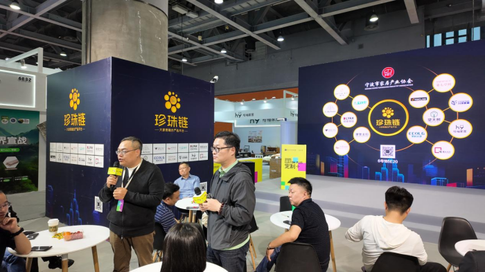 其中,伟德电子平台牵头发起的“珍珠链”展区成为整个展览中极为璀璨的明珠。3月29日下午,大家居融合严选平台——“珍珠链”展区举办了一场企业间的“非诚勿扰”对接会。其中珍珠链14家品类冠军携空间及生活方式解决方案深度对接23家国内头部定制品牌研发总,如:曲美研发总李辉,科凡研发总邹敏青,肯帝亚总经理刘总和研发总都到了珍珠链展位现场,共同探讨未来行业发展方向与合作契机。