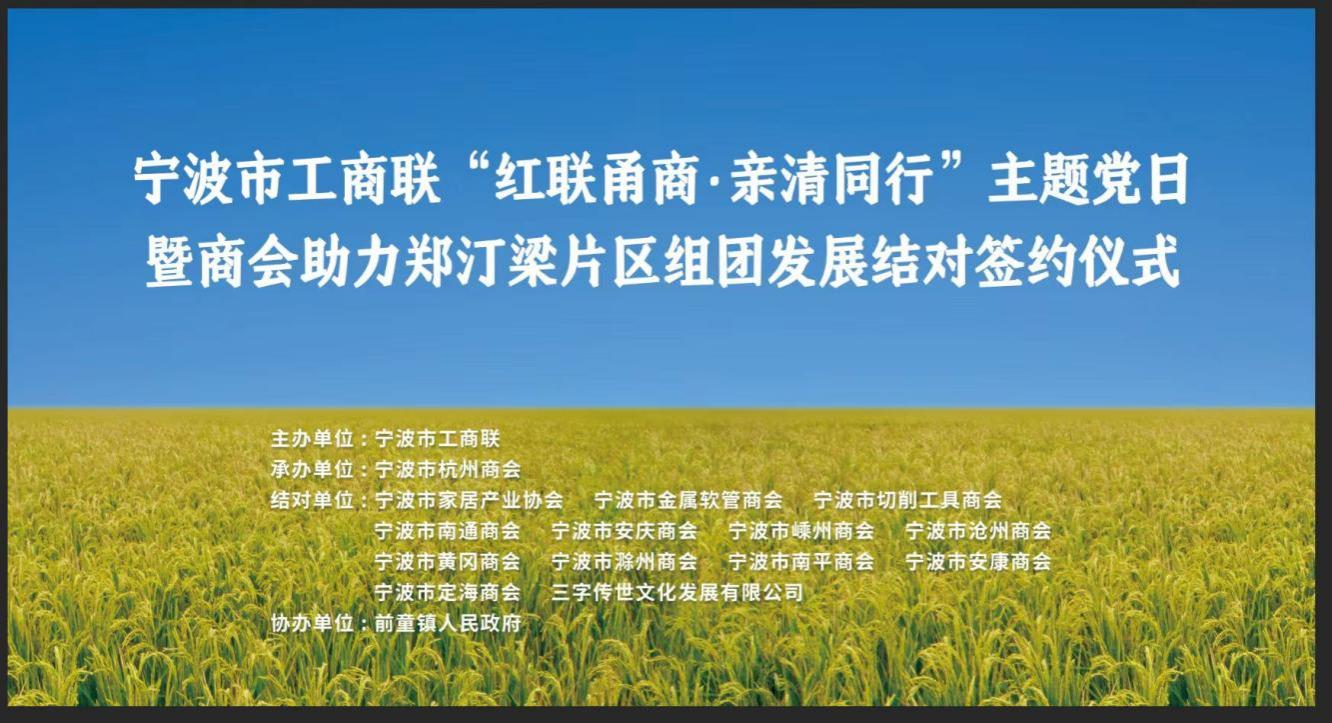 本次活动31家商会的会长、党支部书记、秘书长等负责人70多人齐聚大郑村,开展“红联甬商•亲清同行”主题党日活动,举行商协会助力郑汀梁片区组团发展结对签约仪式,我会执行会长兼秘书长杨君渊,协会副会长、党支部书记干林法与支部党务工作者杨再鹏共同参与本次主题党日活动。