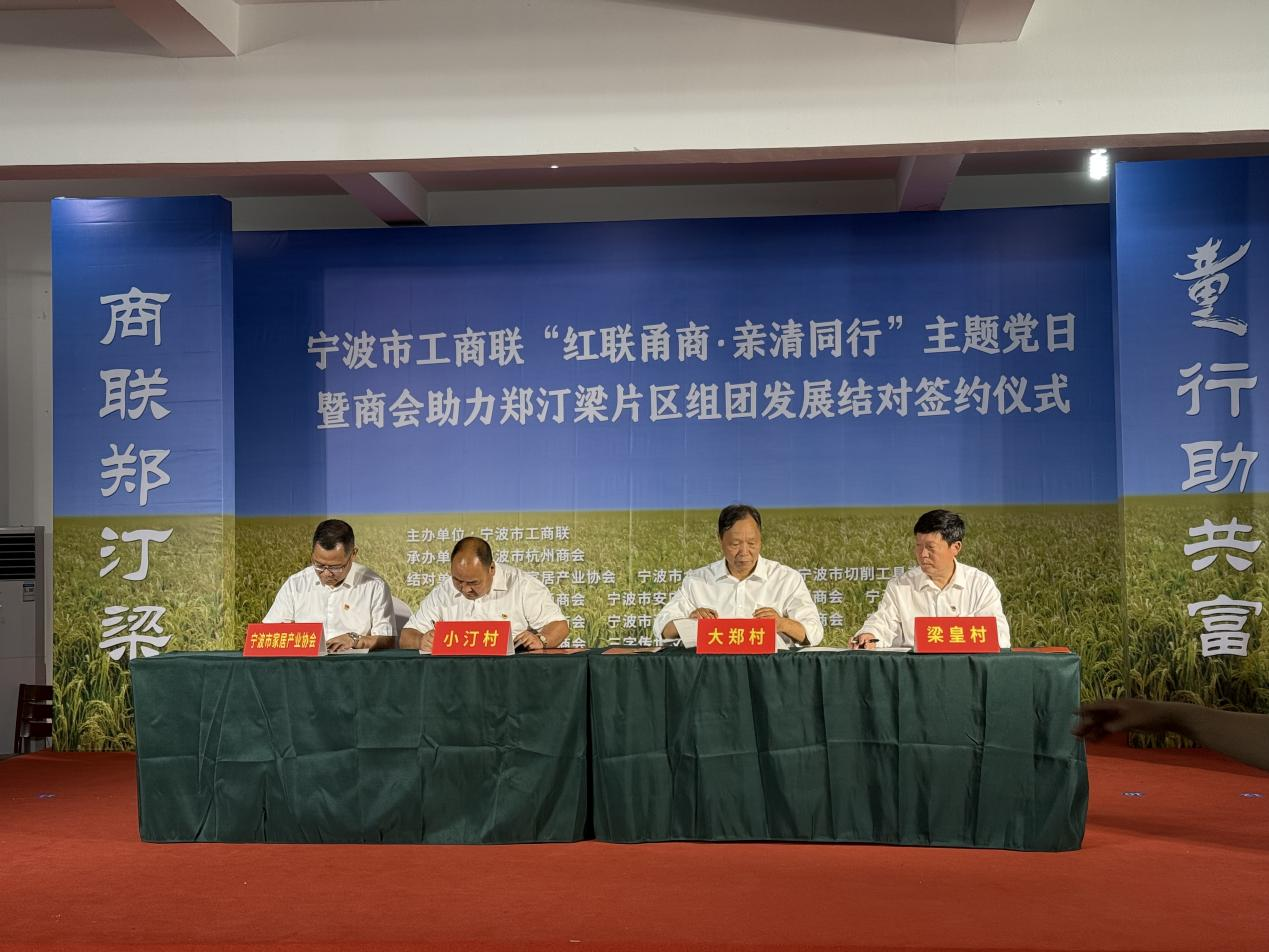 今年,是“十四五”规划收官之年,是浙江高质量发展建设共同富裕示范区的关键之年,是宁波打造共同富裕先行示范标志性成果的关键之年。关键之年,考验关键担当。如何发挥工商联系统优势,扛起关键担当?市工商联对标市委、市政府《关于以“千万工程”牵引城乡融合发展缩小“三大差距”建设共同富裕先行市的行动方案》,部署开展“商联村社助力共富”活动,充分发挥所属商会的平台、组织和资源优势,努力为“强城、兴村、融合”贡献力量。大郑村作为市工商联农指员派驻村,是“商联村社助力共富”活动启动后的首批结对签约村。