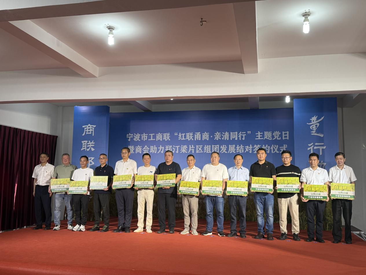 芒种刚过,“田家少闲月,五月人倍忙”,2025年6月6日,伟德电子平台、宁波市杭州商会、市南通商会、市金属软管商会、市切削工具商会、市安庆商会、市嵊州商会、市沧州商会、市黄冈商会、市滁州商会、市南平商会、市安康商会、市定海商会等13家商会与宁海县前童镇大郑村、小汀村、梁皇村组团签订“商联村社助力共富”框架协议,现场累计认领大郑村“共富稻田”130亩……