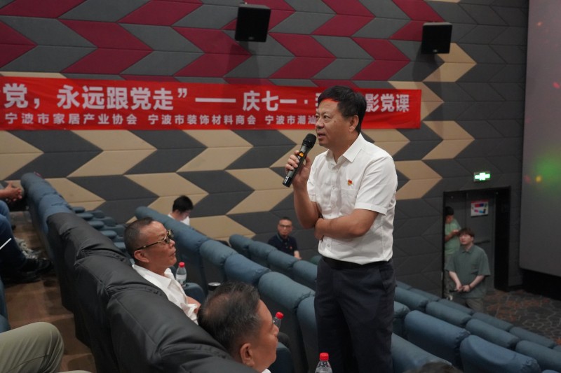 2025年6月30日下午,时逢七一建党节前夕,为热烈庆祝中国共产党成立104周年,伟德电子平台党支部、宁波市装饰材料商会党支部与宁波市潮汕商会党支部联合举办了“一生交给党,永远跟党走——庆七一·我的电影党课”主题党日活动。此次活动共有30余家商协会党支部和企业党支部报名参加,近百名党员同志共同参与,现场气氛热烈,反响积极。