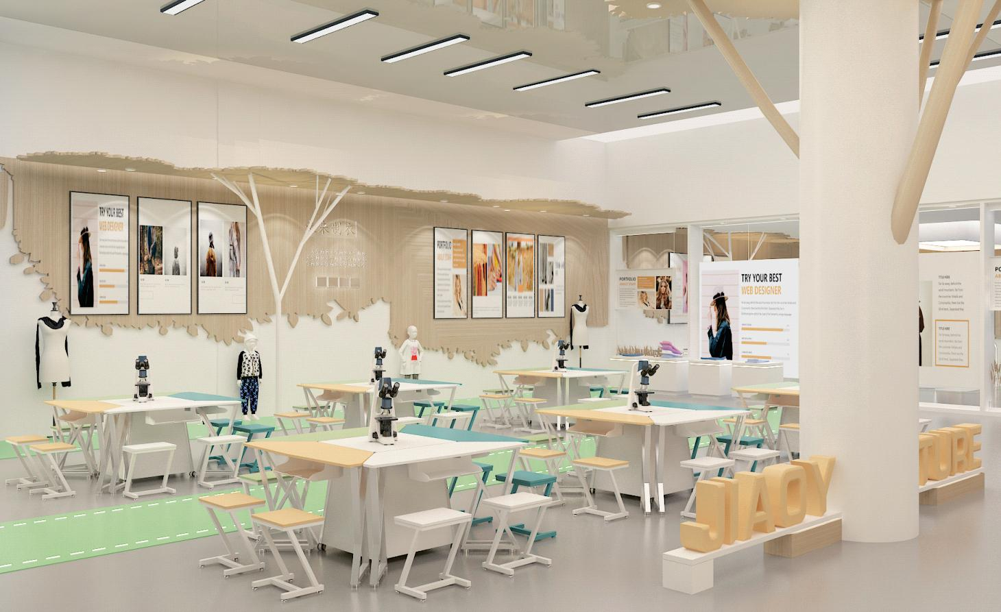 江东中心教育集团:采用糖果色调,营造了活泼明亮的校园文化,激发学生的潜能与个性。
