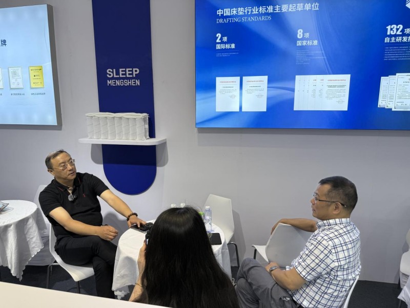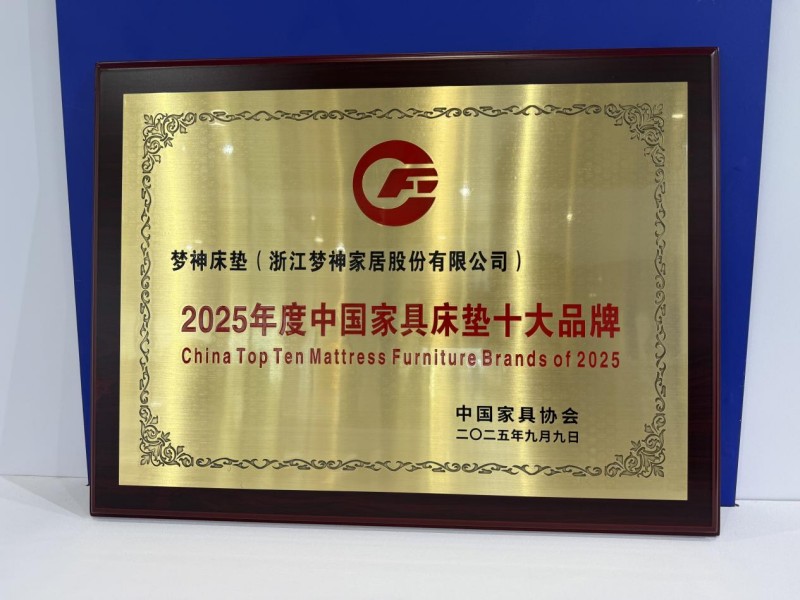 杨君渊一行首先来到协会会长单位梦神床垫、与会长余霆探讨了本次展会的热点,同时梦神集团在本次 展会荣获了由中国家具协会颁发的“2025年度中国家具床垫十大品牌”的特别荣誉。这代表着梦神荣获的消费者信任与支持。
