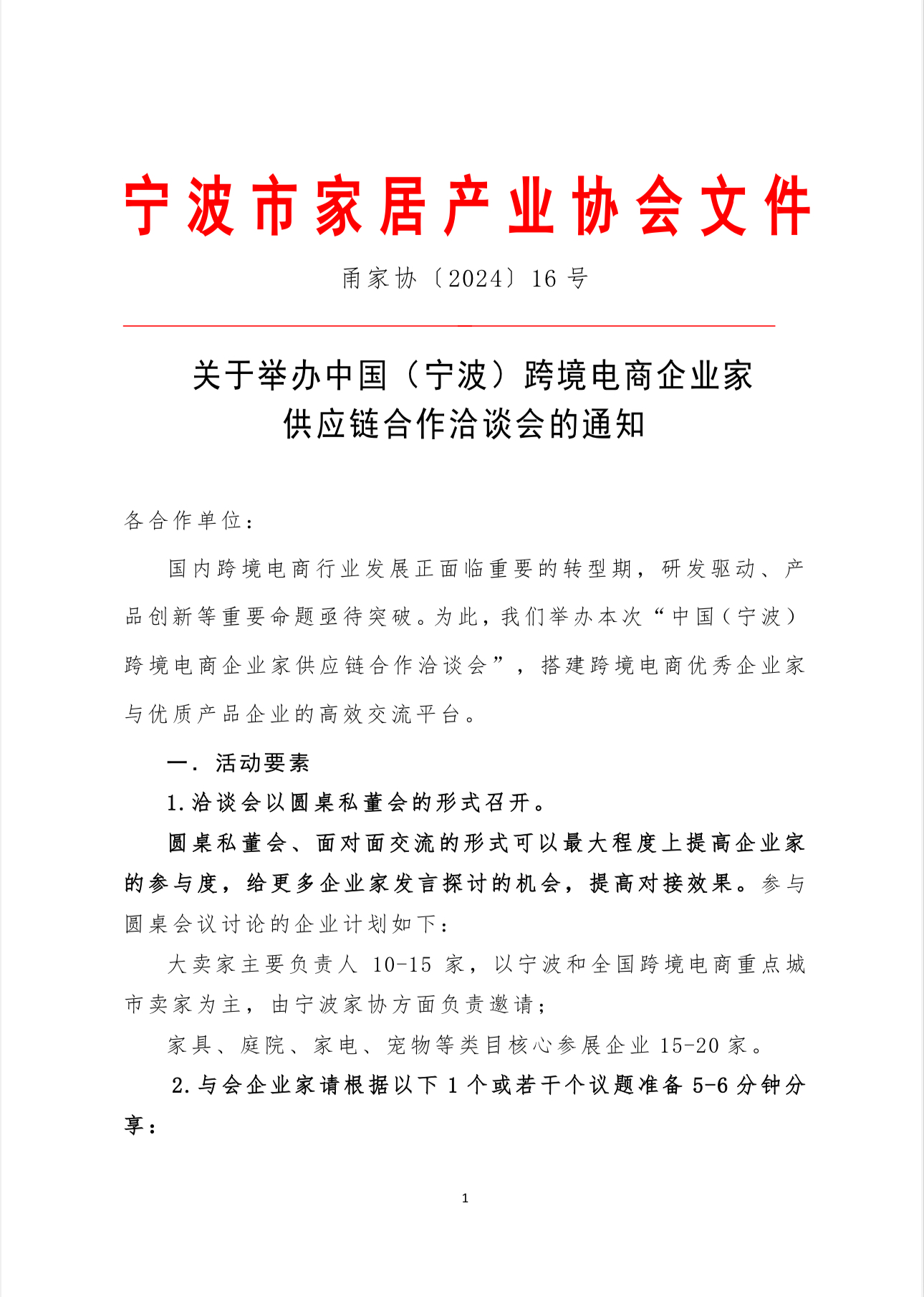 > > 甬家协〔2024〕16号关于举办中国(宁波)韦德1946娱乐手机版产品企业家供应链合作洽谈会的通知