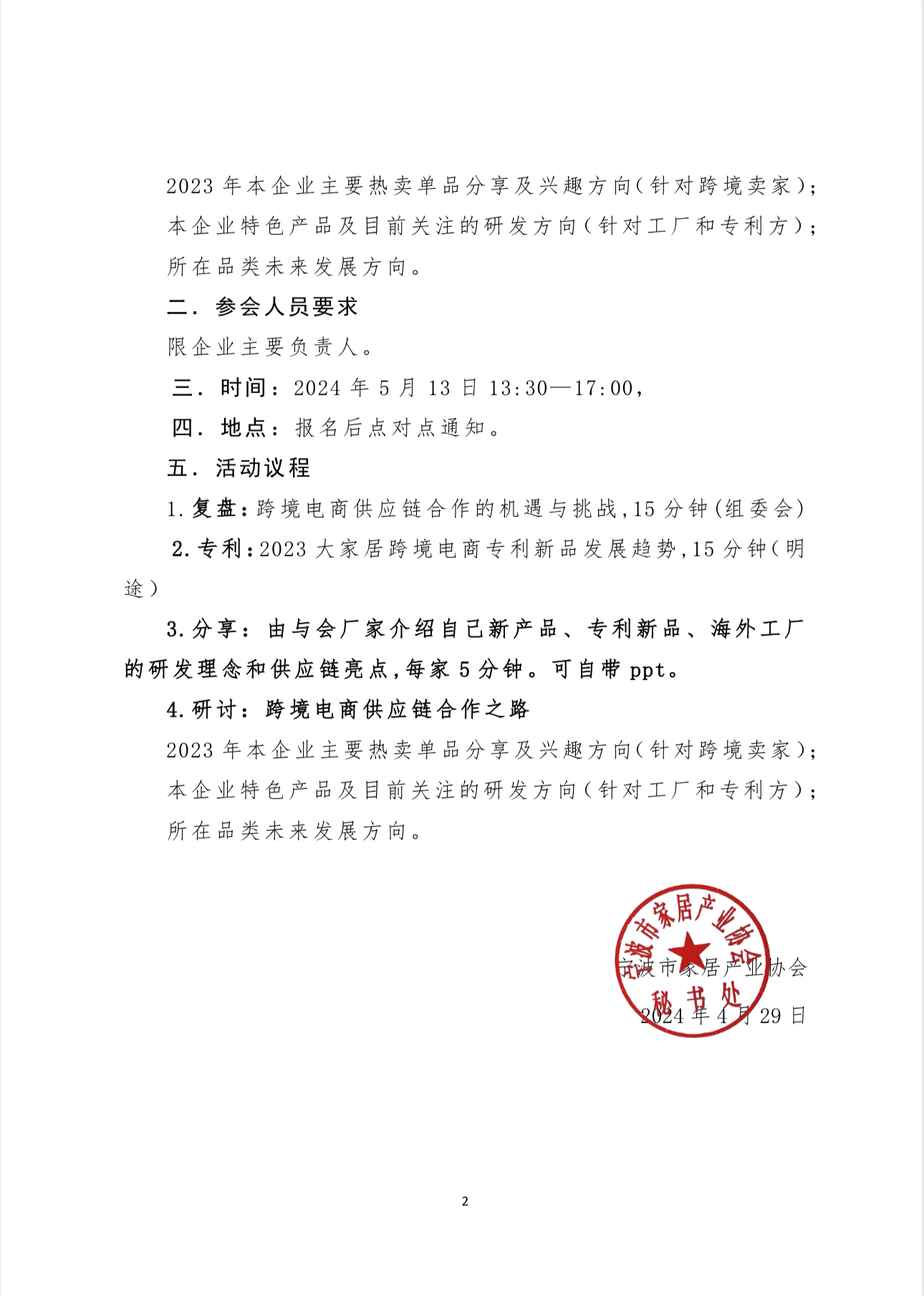 甬家协〔2024〕16号关于举办中国(宁波)韦德1946娱乐手机版产品企业家供应链合作洽谈会的通知