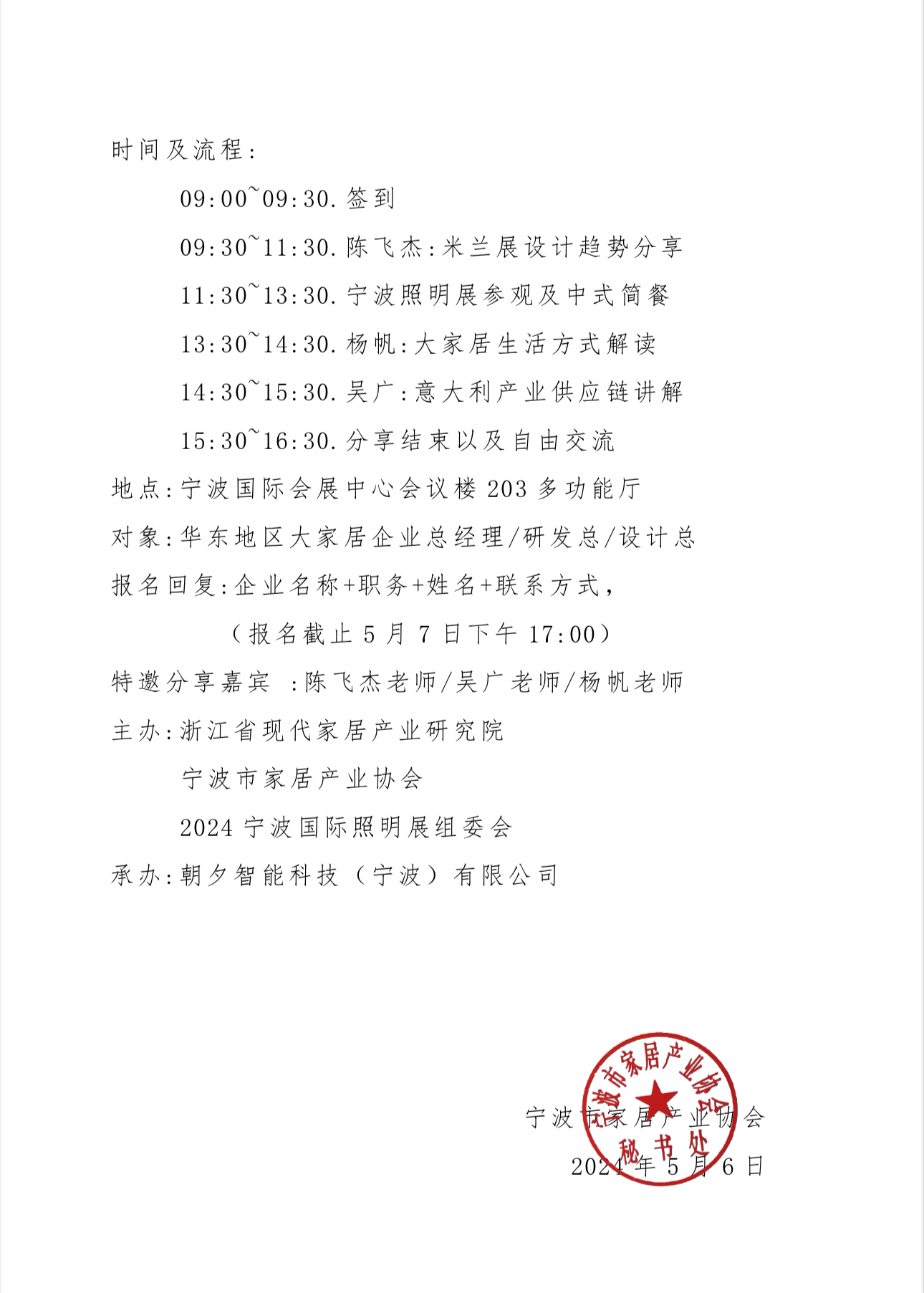 甬家协〔2024〕17号关于举办米兰展研学复盘及大家居生活方式构想的通知