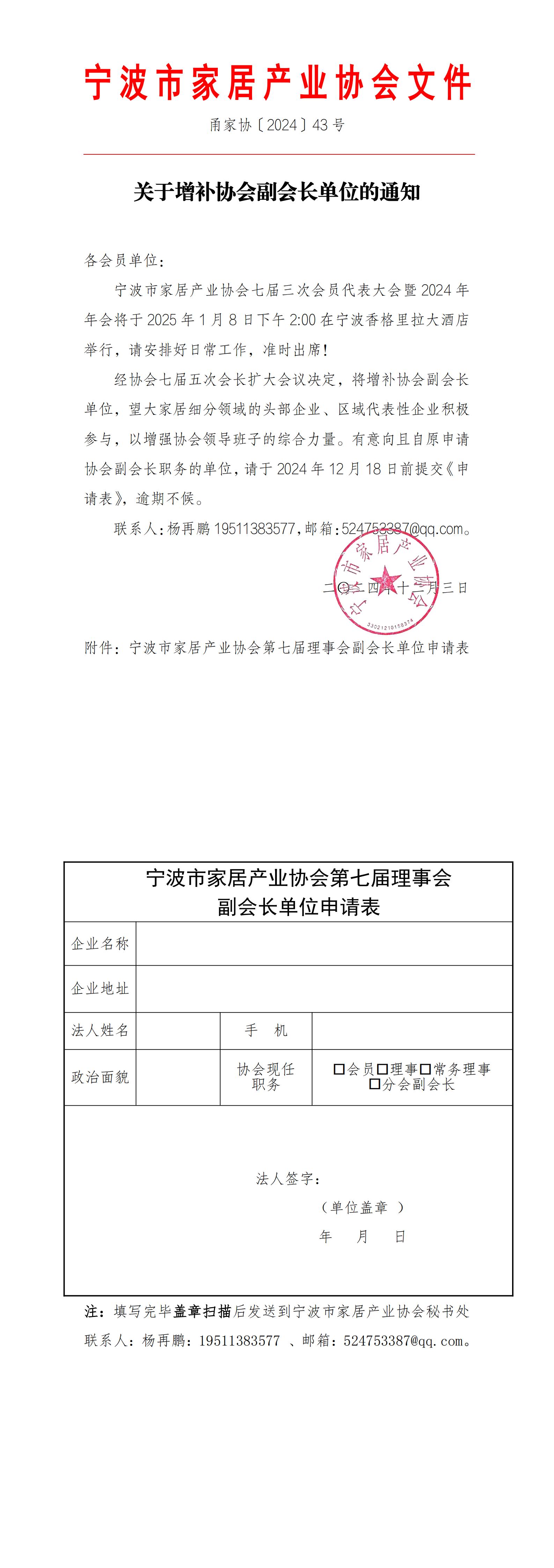 > > 甬家协〔2024〕43号关于增补协会副会长的通知