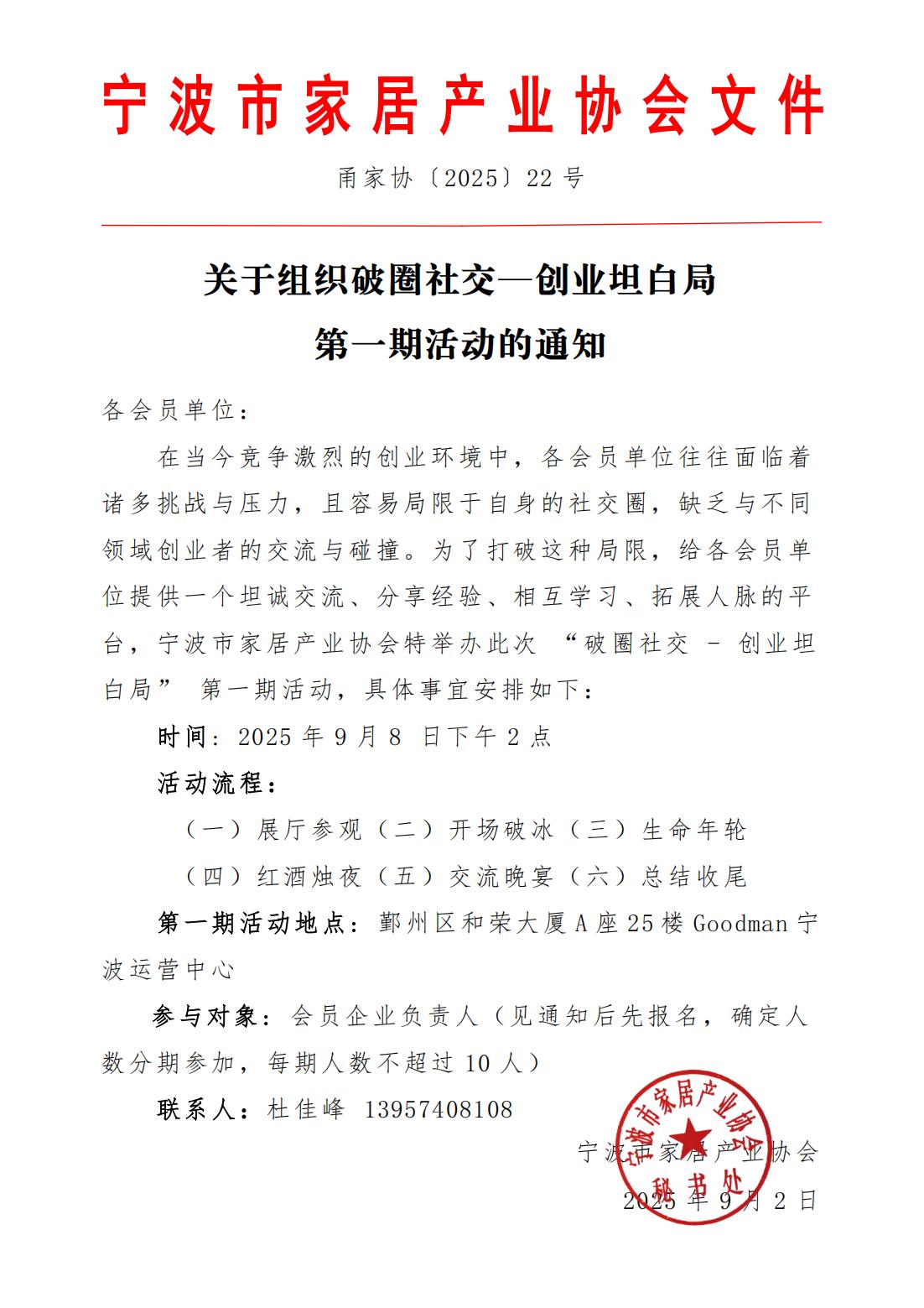 > > 甬家协〔2025〕22号关于组织破圈社交—创业坦白局第一期活动的通知